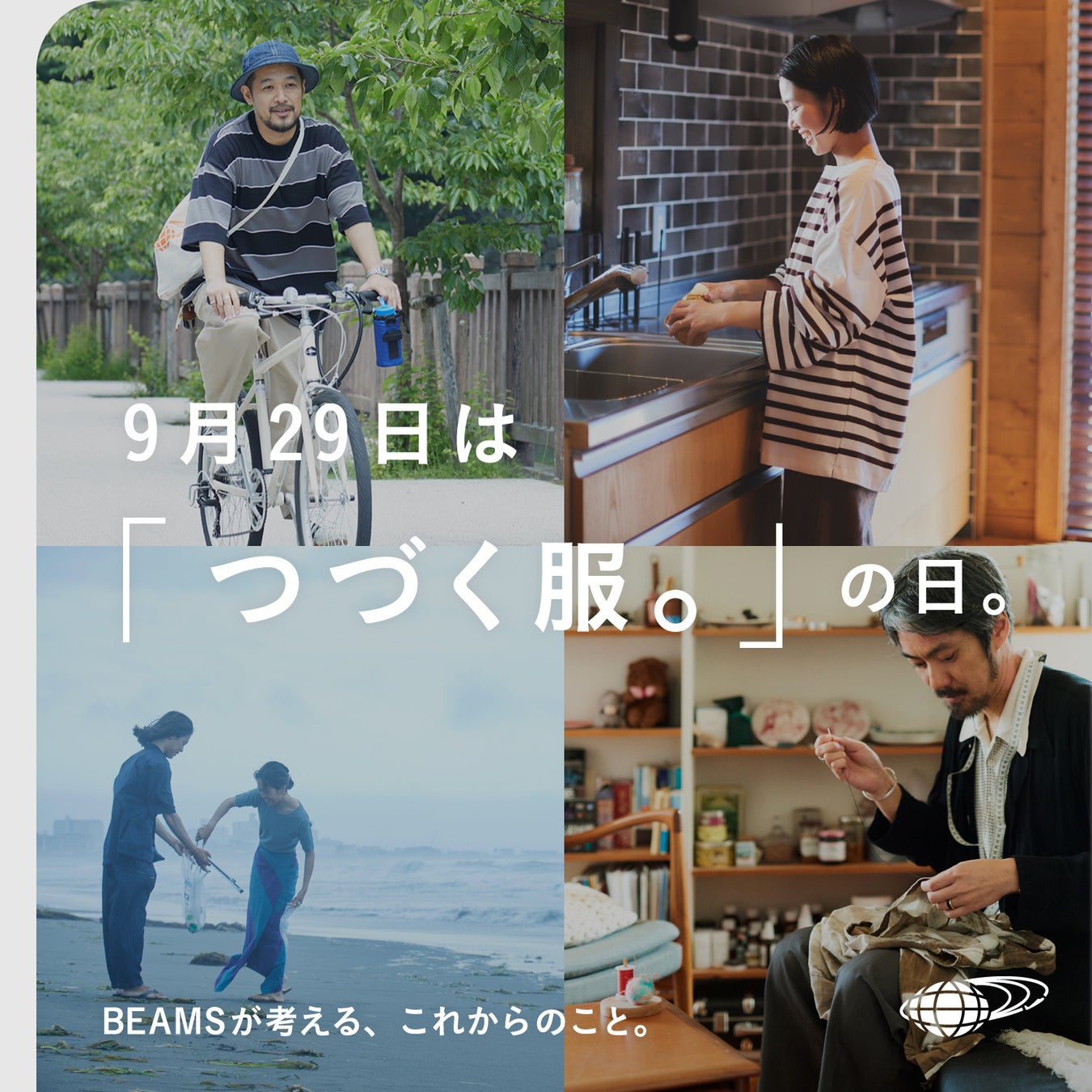 https://www.beams.co.jp/special/tsuzukufuku/)では、ビームスのスタッフにフォーカスし、身近な実例の中にある等身大の理念と行動を、ファッションを楽しむ多くの人へご紹介するコンテンツを公開しています。日々の暮らしに取り入れるアイデアや、洋服を永く愉しむための知識やこだわりなど、個性豊かなスタッフが、様々な角度からサステナビリティと向き合い、語ります。