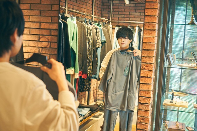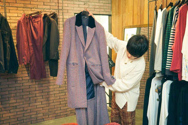 堀江さんとともに、コラボアイテムの制作に協力してくれるglambの旗艦店にやってきました。メンズウェアを主に取り扱うglambは、“Grunge for Luxury(贅沢のためのグランジ)”がコンセプト。グランジの要素をデザインに落とし込みつつ、上質な素材や仕立てにこだわっています。これまで「ジョジョの奇妙な冒険」シリーズや「エヴァンゲリオン」シリーズ、「キングダム」「呪術廻戦」「僕のヒーローアカデミア」など数々のTVアニメともコラボ。声優の斉藤壮馬さん、石川界人さんのプロデュースアイテムも手がけてきました。