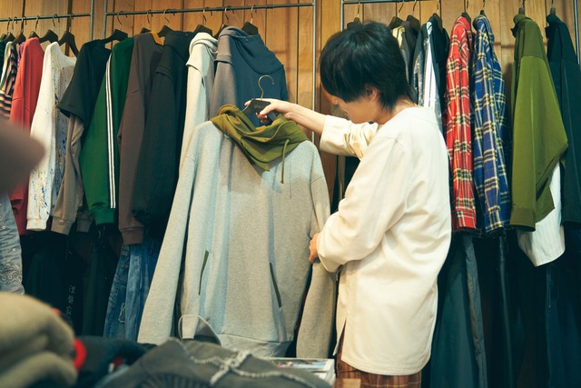 寺本 そうですね。こういうふうにパーカーのフードが変形だったり、スウェットでもプレッピー(アメリカ合衆国の名門私立学校に通う学生が起源のファッションスタイルのこと)っぽく襟が付いてたりと、1枚でコーデとして完成するようなアイテムが多いです。